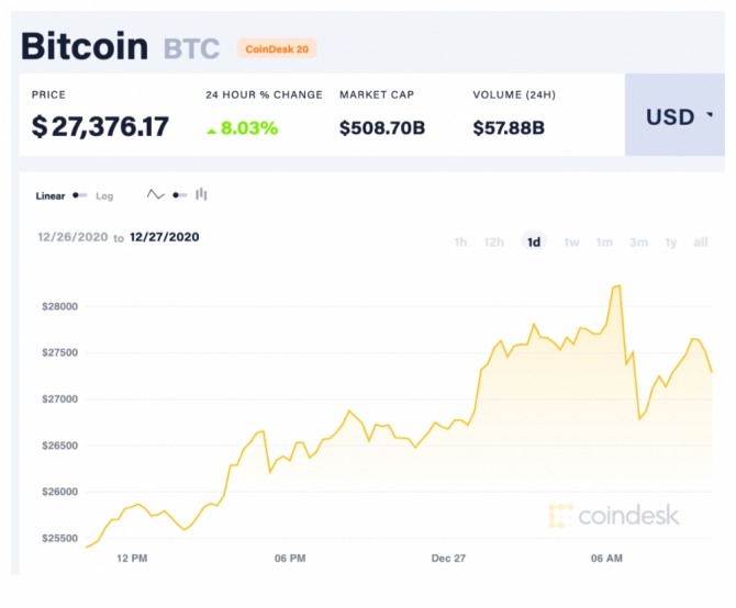 이는 오랫동안 심리적 저항선이었던 2만 달러(약 2198만 원)를 지난 16일 돌파한데 이은 기록이고 지난 1월 비트코인 가격이 7000달러(약 769만 원)였던 점을 고려하면 상전벽해 수준의 대변화다.