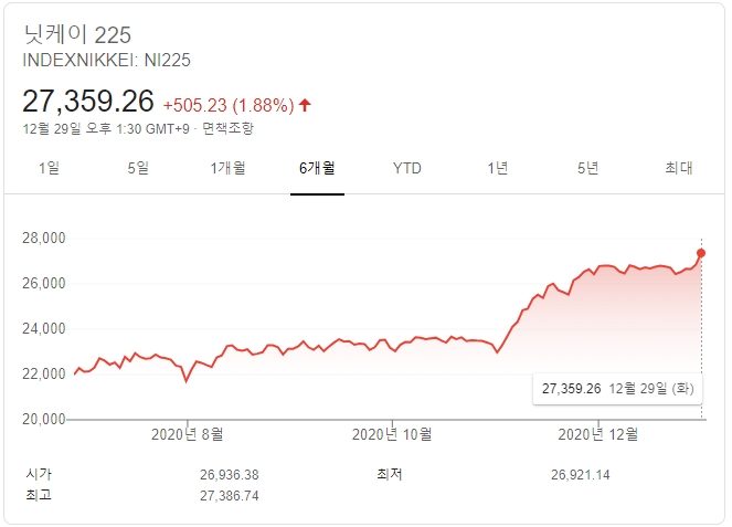 이미지 확대보기로이터는 29일 아시아 시장 관련 보도에서 일본 닛케이평균주가가 1.63% 급등해 1990년 8월 이후 최고치를 기록했다고 보도했다.
