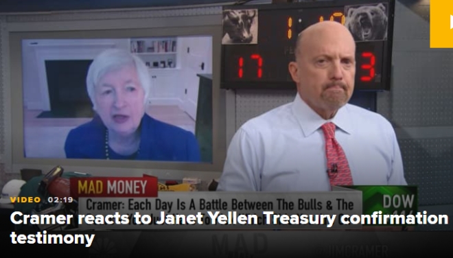 ”그녀는 직업이 없고 음식을 식탁에 올릴 필요가 있는 사람들을 돕기 위해 몇 번이고 정규직화 안건을 제안했으며, 이는 옐런이 많은 돈을 쓰기를 원한다는 것을 의미한다"고 ‘매드머니’(MAD MONEY) 진행자는 말했다.