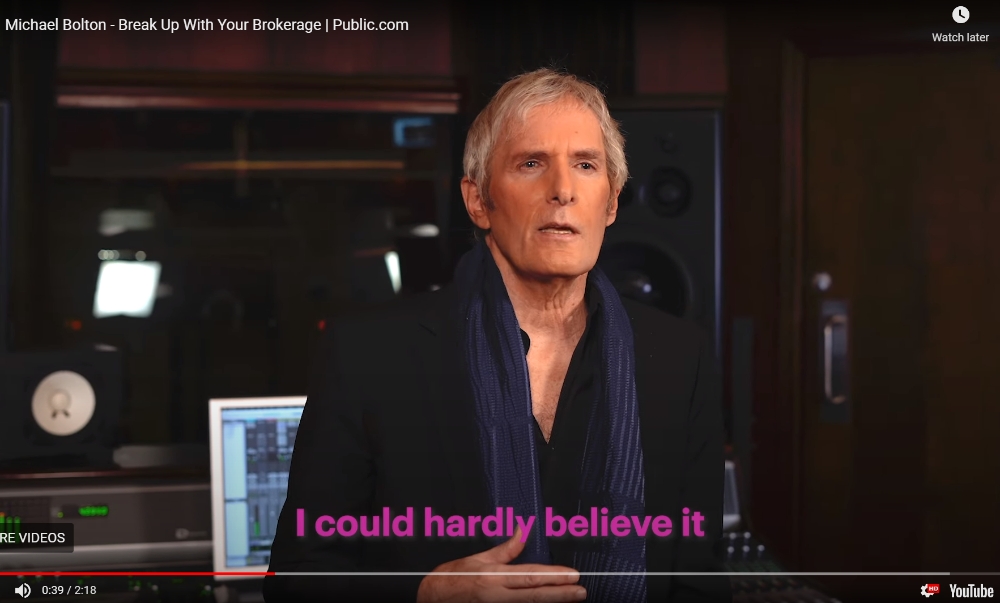 그래미상을 수상한 1989년 히트곡 ‘How Am I Supposed to Live Without You’ 등 수많은 히트곡을 남긴 그는 로빈후드의 경쟁업체인 퍼블릭닷컴이 제작해 최근 공개한 유튜브 영상에 출연, 개인투자자들을 배신한 로빈후드와 퍼블릭닷컴은 다르다고 강조했다. 로빈후드를 직접 겨냥하지는 않았지만 로빈후드를 디스한 셈이다.