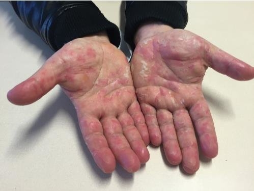 제나 리파르트 로즈(Jenna Liphart Rhoads) 박사는 "간질환으로 손바닥에 홍반이 나타나는 것은 손에 있는 작은 혈관(모세혈관)이 팽창해 혈액량이 늘어나기 때문이다"라고 설명했다.
