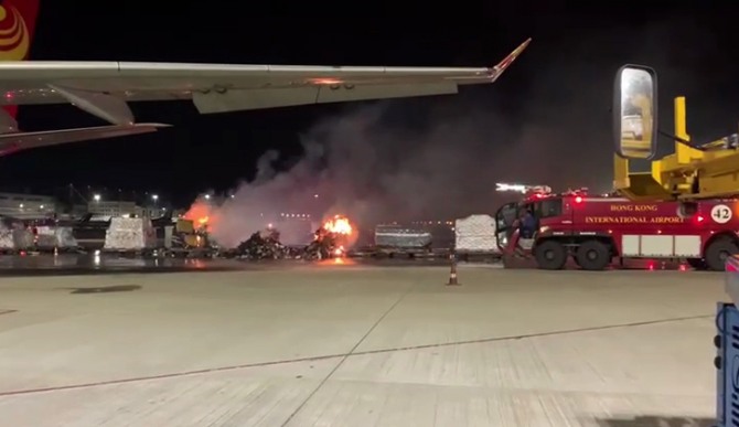 이미지 확대보기지난 11일(현지 시간) 홍콩첵랍콕공항 비행기 계류장에서는 홍콩화물항공터미널이 태국 방콕으로 운송할 화물의 적재를 대기하는 도중 스마트폰과 부품에서 화재가 발생했다.
