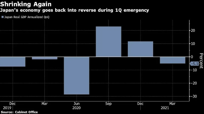 블룸버그의 이코노미스트는 “1분기 일본의 GDP가 예상보다 크게 위축된 것과 관련한 세부 내용을 살펴보면 민간 투자의 급격한 감소와 급격한 재고 증가라는 나쁜 소식이 더 많이 있다. 이런 신호들은 코로나 비상사태 속에서 성장 동력이 될 제조업의 약세를 가져올 것이며 2분기 경제에 하강 위험을 가중시킬 것”이라고 전망했다.