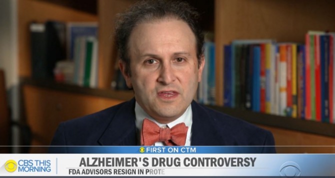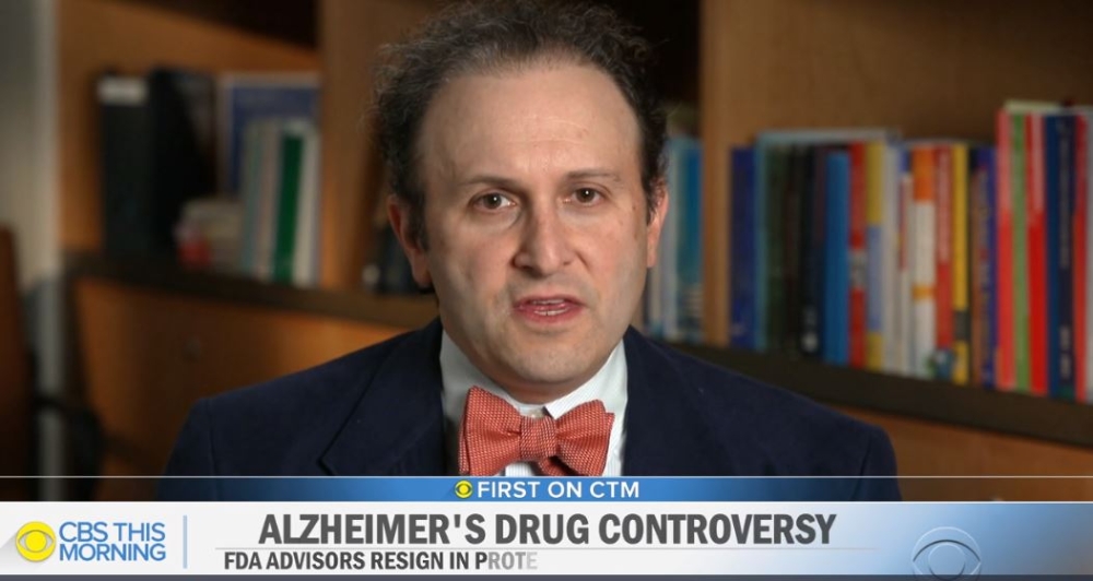 21일(현지시간) 미국 CBS는 논란이 되고 있는 상품명 '애듀헬름(Aduhelm)'의 승인 이후 FDA 자문직을 사임한 하버드 의과대학 교수 애런 케셀하임(Aaron Kesselheim)과의 인터뷰를 방영했다.