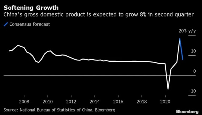 로이터통신은 글로벌 경제전문가 51명을 대상으로 실시한 자체 설문조사 결과 중국의 2분기 GDP 증가율이 약 8.1%를 기록한 것으로 추정된다고 13일(이하 현지시간) 보도했다. 중국 정부가 목표로 제시한 올해 경제성장률은 6% 선이다.