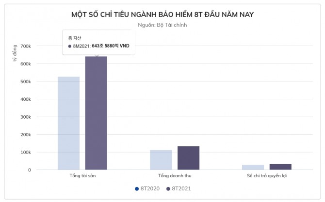 8월 말까지 보험 시장의 총 자산은 작년 동기 대비 22.1% 증가한 643조5880억동에 달한 것으로 추산된다. 그 중 손해보험 기업의 총 자산은 102조2220억동, 생명보험 기업은 541조3660억동이다.