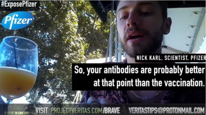 6일(현지시간) 에포크 타임스(The Epoch Times)는 화이자 소속 과학자 3명이 미국 탐사보도 미디어 프로젝트 베리타스(Project Veritas)를 통해 코로나19 바이러스에 대한 자연 면역(natural immunity)을 인정했다고 보도했다.