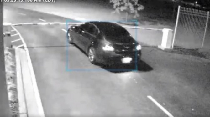 경찰에 따르면 감시 카메라에 검은색 인피니티를 탄 남성 3명이 보안 게이트 아래에서 운전하는 모습이 포착됐고, 범인들은 창문을 깨고 주차장에 있는 차량에 들어갔다고 밝혔다.