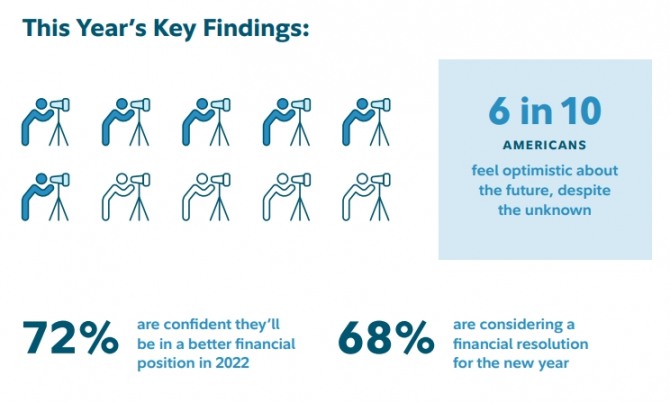 응답자의 72%가 살림살이가 내년에 나아질 것으로 확신한다는 입장을 피력한 가운데 68%는 새해 가계 재정을 개선하기 위한 새로운 결심을 하고 있다고 밝혔다.
