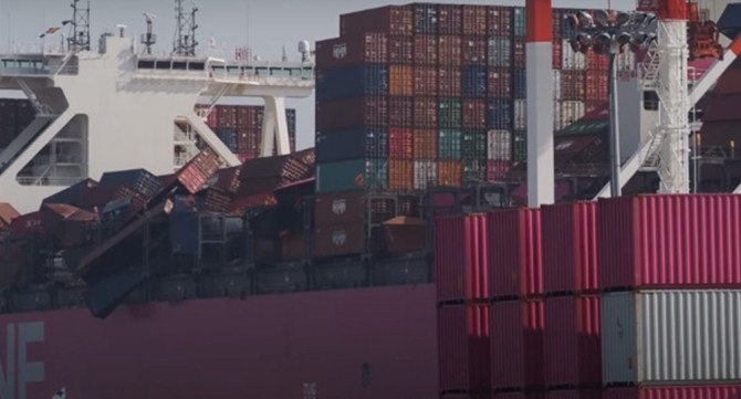 강한 돌풍은 일본 선박 원 에이퍼스의 측면을 강타했다. 갑판에 실려 있던 컨테이너 1816개가 바다로 추락했다. 갑판에는 400~500여개의 컨테이너가 쓰러져 나뒹굴었다.