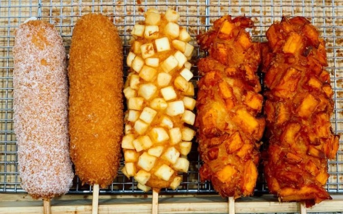 떡 핫도그, 모짜렐라와 체다 치즈 핫도그, 오징어 잉크 반죽의 핫도그, 그리고 감자 튀김이 튀김옷에 맛있게 붙어있는 감자 핫도그 등이 메뉴에 포함돼 있다.