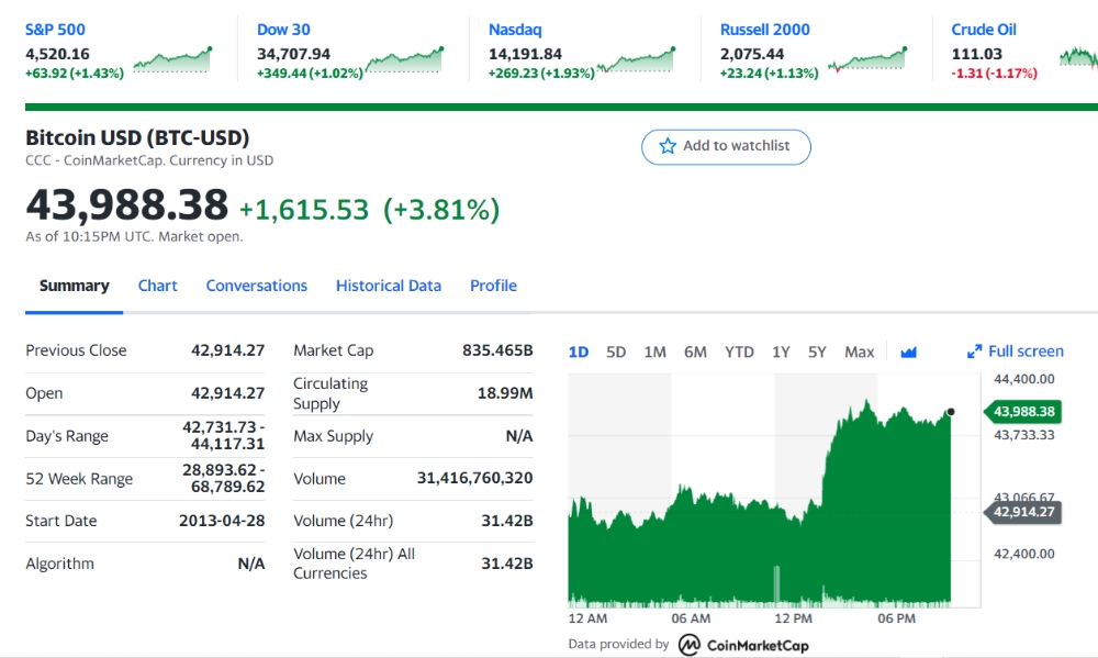 이미지 확대보기러시아가 비트코인으로 원유대급을 결제할 수 있다고 밝혔다. 우크라 침공으로 달러 거래가 차단되어 그 대안으로 비트코인을 활용하겠다는 것이다. 이같은 소식에 비트코인등 가상화폐 시세가 폭발하고 있다. 뉴욕증시 나스닥 다우지수도 오르고 있다.
