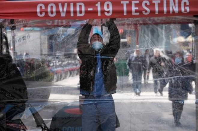 뉴욕타임즈의 자체 자료에 따르면 29일 기준 미국의 7일간의 하루 평균 신규 코로나19 확진자는 5만6869명으로 2주 전보다 52% 늘었다.