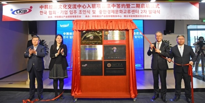 이미지 확대보기한중연태산업단지관리위원회가 주관하고 한중연태산업단지관리서비스센터, 연태시주한경제협력센터(이하"주한센터")가 주최한 이번 행사에는 한중 기업인과 협회 대표 50여 명이 참석해 협약 및 발대식을 지켜봤다.