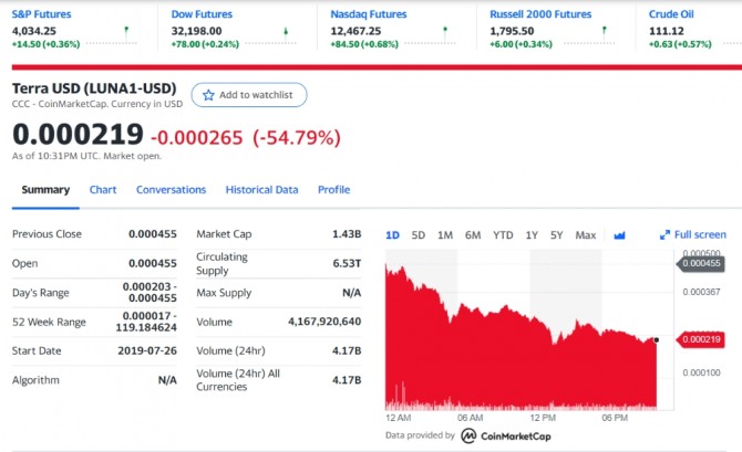 한국산 가상화폐 루나와 테라USD(UST) 폭락 사태로 일주일 새 두 코인의 시가총액이 58조 원이나 증발했다. 두 코인을 발행한 블록체인 기업 테라폼랩스에 투자했던 가상화폐 업계의 큰손들도 막대한 손실을 봤을 것이라는 진단이 나왔다. 뉴욕증시 블룸버그 통신은 최근 일주일 동안 UST와 루나 시가총액이 450억 달러(57조7천800억 원) 증발했다고 보도했다. 테라와 루나의 몰락은 테라폼랩스를 지원한 벤처캐피털(VC)로도 번졌다. 테라폼랩스에 돈을 댄 업체는 갤럭시 디지털 홀딩스, 판테라 캐피털, 라이트스피드 벤처 파트너스, 점프 크립토, 스리 애로스 캐피털 등이다. 가상화폐 전문 매체 크립토브리핑은 "루나, UST 폭락 사태로 갤럭시 디지털 주가는 30% 넘게 급락했고, 노보그래츠는 침묵을 지키고 있다"고 전했다.