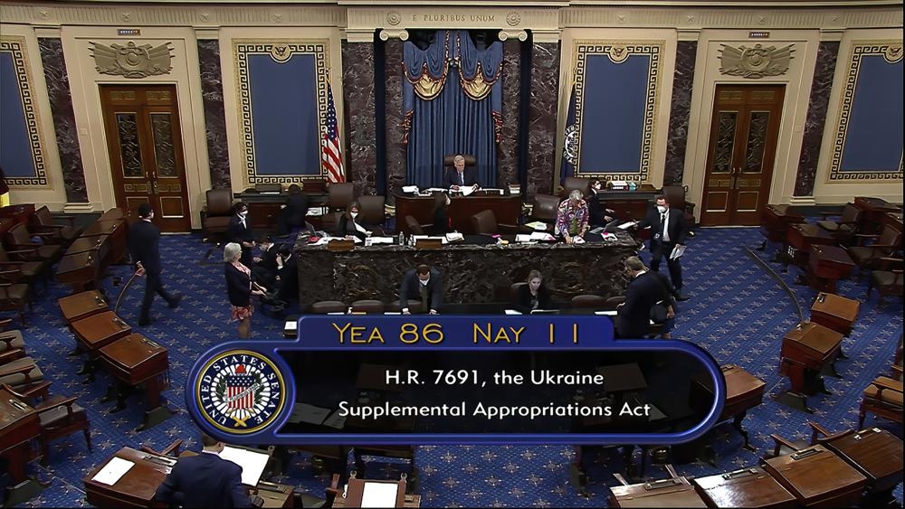 미 상원은 이날 전체 회의에서 우크라이나에 대한 추가적인 군사적·인도적 지원 내용을 담은 예산법안을 상정해 찬성 86대 반대 11로 가결했다. 법안은 우크라이나에 대한 201억 달러 (25조 6,878억 원) 규모의 군사적 지원을 비롯해 80억 달러(10조 2,240억 원) 규모의 경제 지원, 50억 달러(6조 3,900억 원)가량의 식량 지원 예산 지원 대책을 담고 있다.