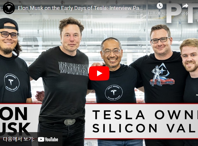 일론 머스크 테슬라 CEO(왼쪽에서 두번째)가 최근 ‘실리콘밸리 테슬라 차주 동호회’ 간부들과 인터뷰를 진행한 뒤 포즈를 취하고 있다. 사진=유튜브이미지 확대보기