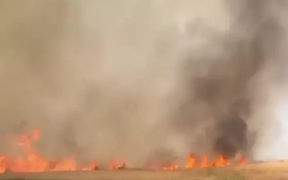 소셜 미디어에 공유된 비디오 영상은 우크라이나 들판의 작물이 완전히 파괴되면서 밝은 주황색 불꽃과 짙은 검은 연기의 장면을 보여준다.