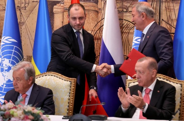 이날 합의는 러시아가 우크라이나를 침공하고 흑해를 봉쇄한지 5달여 만에 유엔과 튀르키예 중재로 극적으로 이뤄졌다. 지난 14일 이스탄불 4자 협의에서 물꼬를 텄다.
