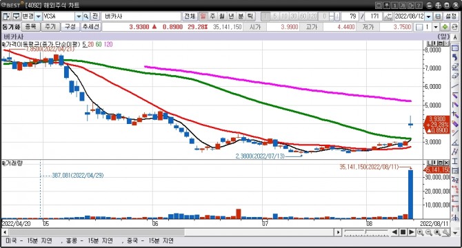 바카사는 이날 전일비 1.01달러(33.22%) 폭등한 4.05달러로 뛰어올랐다.
