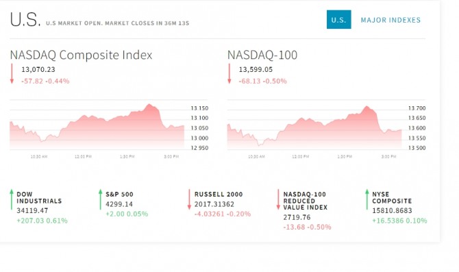 미국의 7월 산업생산은 도매 물가 상승과 공급망 차질에도 계절 조정 기준 전월보다 0.6% 증가했다. 뉴욕증시 예상치인 0.3% 증가를 웃돌았다. S&P500지수에서는 필수소비재, 에너지, 임의소비재 관련주가 오르고, 기술, 부동산, 통신 관련주는 하락했다. 나스닥 대장주 애플는 채용 업무를 담당하는 계약직 인사담당자 100명가량을 해고했다는 보도에 주가가 약세이다. 줌비디오 주가는 투자은행 씨티가 투자 의견을 중립에서 매도로 내렸다는 소식에 하락했다. 타깃과 로우스의 주가는 올랐다.