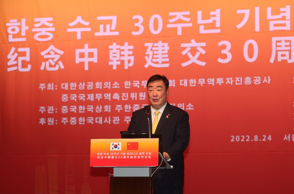 싱 대사는 "30년 전 오늘 1992년 8월 24일 중한 양국 정부 대표는 베이징에서 한중 외교관계 수립에 관한 공동성명에 서명하고 3일 뒤 주한 중국대사관이 정식으로 개관했다"면서 "중한 관계의 30년간 발전을 직접 체험한 외교관으로서 이 장면을 떠올릴 때마다 감회를 어디에 비할 수가 없다"고 밝혔다.