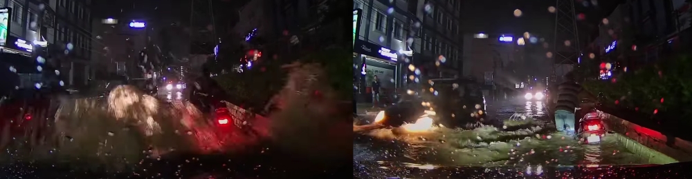 도로 절반 물에 잠기고 발 깊이까지 물 차올라도 방수능력 과시