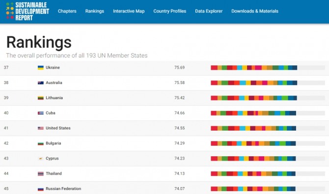 이미지 확대보기USOSD가 조사해 발표한 내용은 이른바 ‘지속가능발전(SDG)’ 지수를 기준으로 유엔 회원국들을 평가한 것. SDG 지수는 제도적인 측면에서 사회적 공평성이 얼마나 확보돼 있는지를 비롯해 17개 항목에 걸친 평가 결과를 토대로 집계된다.