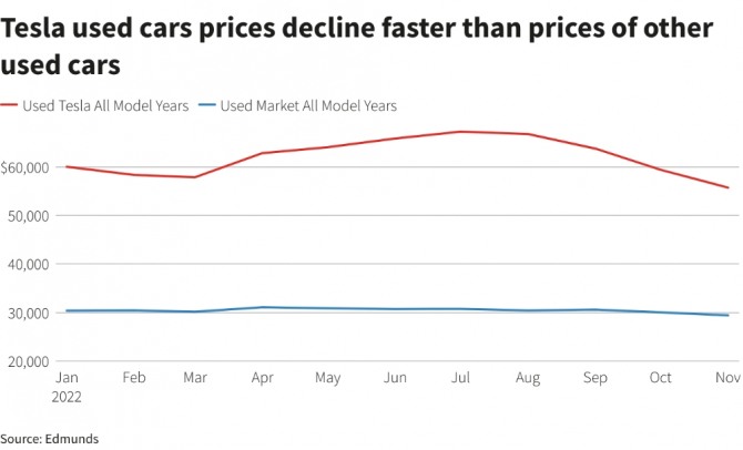 로이터는 테슬라 중고 전기차 가격이 크게 떨어진 것이 줄곧 오르기만 했던 테슬라 신차 가격에도 제동이 걸릴 가능성이 크다고 전문가들의 말을 인용해 전망했다.