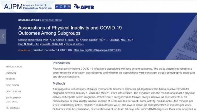 5일(현지시간) 미국 오하이오주 신시내티 지역매체 WKRC에 따르면 미국의 동료 심사 의학 학술지 미국예방의학저널(AJPM)에 최근 올라온 연구 논문에 따르면 건강한 사람뿐 아니라 고혈압이나 심장질환을 지닌 사람들의 경우에도 평소에 운동을 하면 코로나19에 걸릴 가능성이 줄어드는 것으로 나타났다.