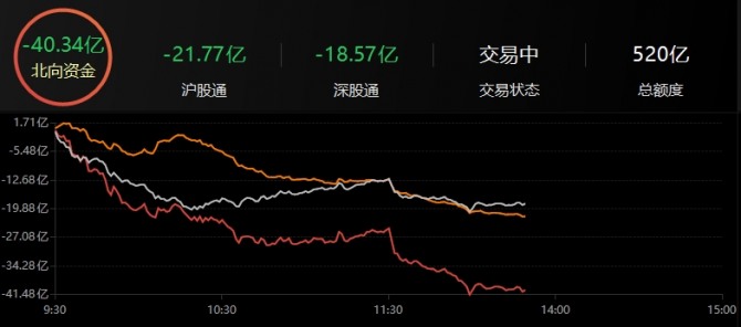 외국인 자금인 북향자금은 42억8800위안(약 8089억2169만원) 순매도를 돌파했다. 그중 후강퉁(沪港通, 상하이·홍콩 간 거래 및 결제 연동 서비스)은 25억3700만 위안(약 4886억2620억 원) 순매도, 선강퉁(深港通, 선전·홍콩 간 거래 및 결제 연동 서비스)은 16억7100만 위안(약 3218억3460만 원) 순매도를 기록했다.