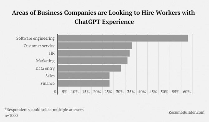 챗GPT 기술 보유자 채용을 가장 적극적으로 고려하는 업무 분야. 사진=레주메빌더닷컴