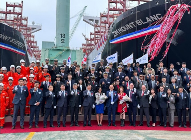 이미지 확대보기20일 삼성중공업은 이스라엘 선사 ZIM 관계자들이 참석한 가운데 1만5000TEU급 LNG 연료추진 컨테이너선 2척의 명명식을 개최하고 선박을 인도했다. 삼성중공업과 ZIM의 계약에 따라 건조될 10척의 선박중 두 번째와 세 번째에 해당하는 두 선박은 각각 짐 마운트 에베레스트(Zim Mount Everest)와 짐 마운트 블랑(Zim Mount Blanc)으로 명명되었다.
