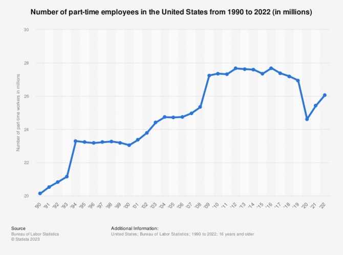 정규직으로 일하는 미국민은 감소하는 대신 아르바이트를 비롯한 비정규직으로 생계를 꾸려가는 미국민이 최근 들어 눈에 띄게 증가한 것으로 파악됐기 때문이다.