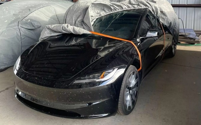 테슬라 모델3 부분변경 제품으로 추정되는 위장막 차량. 사진=드라이브