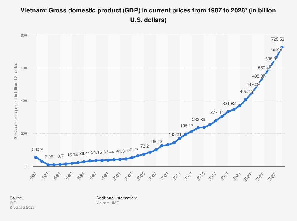 베트남의 올해 증가율 전망치는 6.3%로 소폭 하락했으나, 고도성장 추세는 계속 이어질 것이라는 게 세계은행의 전망이다. 제2의 중국으로 불리는 것이 과언이 아니라는 뜻이다.