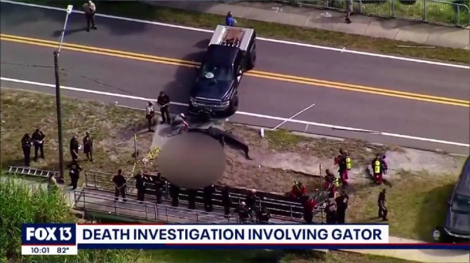 인근 주민이 발견해 신고한 이 악어는 몸길이 14피트(약 4.2m)에 달하는 수컷으로 발견 당시 사람의 시신 일부를 입에 물고 있었던 것으로 알려졌다.