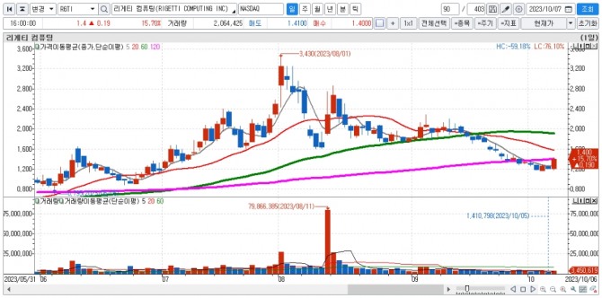 이미지 확대보기리케티 컴퓨팅은 이날 15.7% 튀어 오르며 양자 컴퓨팅 종목 중 가장 큰 폭의 상승률을 보였다. 장중 한때 마이너를 기록하기도 했지만, 장중 고가 18.18%까지 폭등하기도 했다.