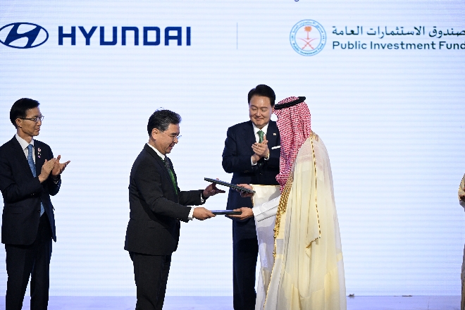 이미지 확대보기23일 대통령실은 '현대차-PIF 체결식'에 대해 당초 별개의 양해각서(MOU)와 함께 같은 날 오전 별도 MOU 서명식에서 추진될 예정이었지만, 사우디 주도로 윤 대통령이 참석하는 투자포럼 행사에 포함됐다.