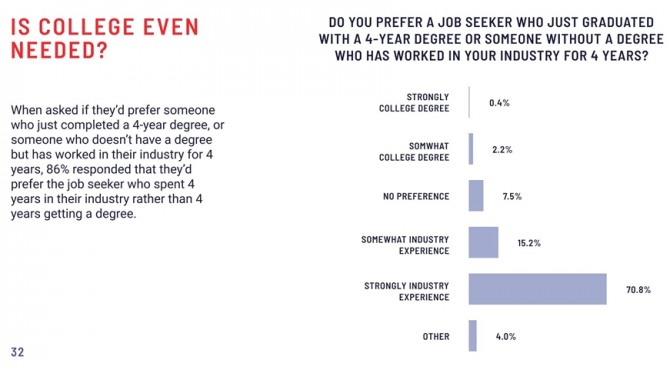 러스크는 오히려 대학 졸업장이 대졸자들의 취업을 가로막는 요인이 됐다고 주장했다.