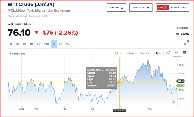 OPEC+의 감산 합의에도 불구하고 현재 배럴당 80달러대인 원유가격이 한동안 90달러선을 돌파할 가능성은 적어 보인다는 것이 뉴욕증시의 분위기다.OPEC+의 추가 감산 결정이 미국 정부의 반발을 살 가능성이 크다는 것이 WSJ의 분석도 나왔다. 지난해 10월 OPEC+가 하루 200만 배럴 규모의 감산에 합의하자 당시 미국 정부는 OPEC+를 향해 '러시아의 우크라이나 침략을 돕고 있다'면서 강력하게 불만을 드러내기도 했다. 미국의 투자은행 골드만삭스는 사우디아라비아가 감산 논의를 주도하는 배경으로 천문학적인 재정이 투입돼야 하는 국가사업을 들었다.사우디가 다양한 국가사업에 들어갈 예산을 확보하기 위해선 국제 유가가 배럴당 88달러 이상으로 유지돼야 적자 재정을 면할 수 있다는 것이다.