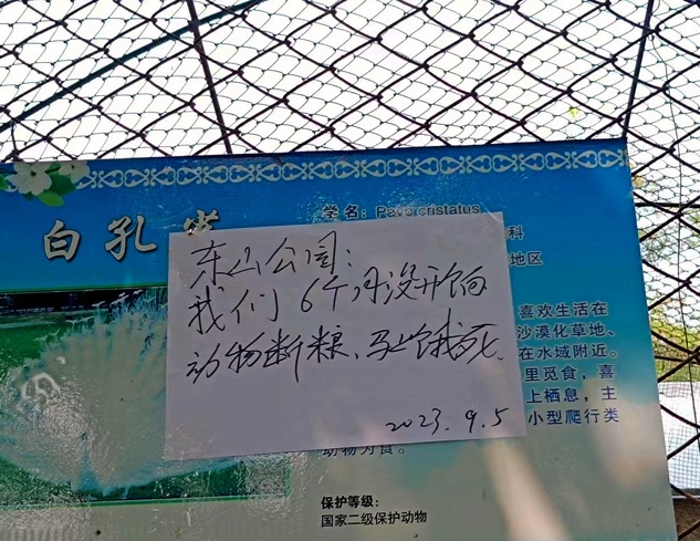 4일 아사히 디지털은 랴오닝성의 시 운영 공원에서 한 사육사가 운영 실태를 폭로하는 호소문을 내걸었다고 보도했다.