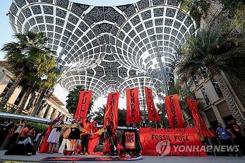 한편 행사장 인근에서 화석연료 사용의 완전 중단을 촉구하는 시위에 나선 환경단체들은 이번 회의에 석유, 가스, 석탄 등 관련 업계 인사가 대거 참석했다는 점을 규탄했다고 로이터 통신은 전했다.