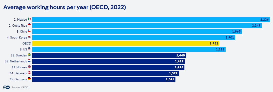 DW는 “이들 국가에서 이같은 조치들을 적극 추진하고 나선 배경에는 이들 국가 근로자들의 평균 근로시간이 역대급으로 높은 고용률 속에서도 갈수록 줄어들고 있기 때문”이라고 전했다.
