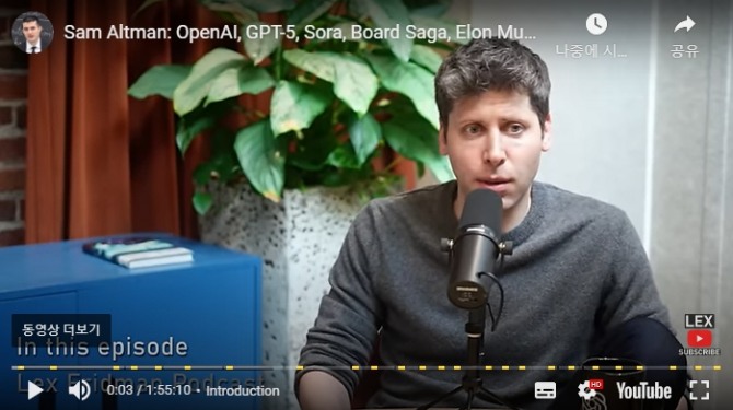 올트먼 CEO가 이 주목할 발언을 내놓은 것은 미국의 컴퓨터 과학자 렉스 프리드먼이 진행하는 팟캐스트 방송에 최근 출연한 자리에서다.