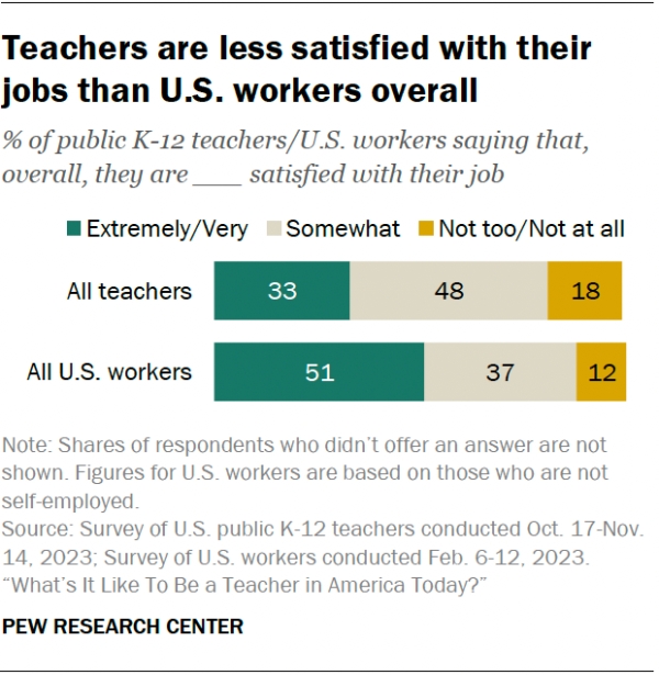 이미지 확대보기미국 공립 초중등 교사의 절반 이상이 선생으로 일하는 것이 갈수록 힘들어지고 있다고 생각하는 것으로 나타났다고 CBS뉴스가 4일(이하 현지시각) 여론조사업체 퓨리서치센터의 최근 여론조사 결과를 인용해 보도했다.