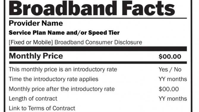 10일(이하 현지 시간) 폭스뉴스에 따르면 연방통신위원회(FCC)는 ‘초고속인터넷정보표시(broadband facts)’라는 라벨을 만들어 초고속 인터넷 서비스 업체들을 대상으로 소비자들에게 제시하는 것을 의무화하는 내용의 새로운 규정을 이날부터 시행한다고 발표했다.