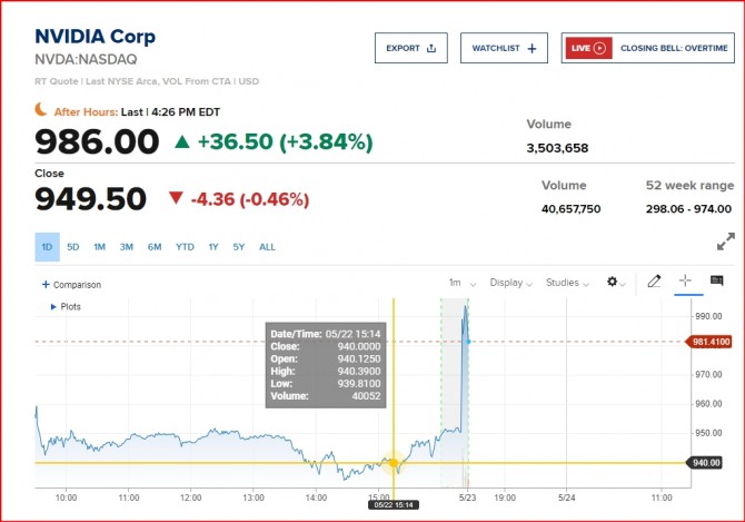 뉴욕증시 엔비디아, 1분기 실적 시장 예상치 상회