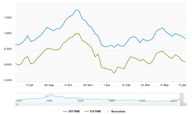 프레디맥에 따르면 미국의 모기지 금리는 지난 3월 7.22%로 고점을 찍은 뒤 최근 3달 연속 하락세를 보이고 있는 것으로 나타났다.