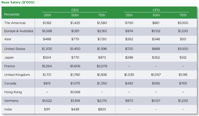 FW 쿡은 “아메리카 지역 기업 CEO의 경우 총 보수의 약 92%가 성과급과 장기 인센티브로 구성됐고 CFO의 경우도 이 비율이 87%에 달했다”면서 “특히 미국에서는 CEO가 회사의 전략과 성과를 주도하는 핵심 인물로 간주돼 성과 중심의 보상이 특히 중요한 것으로 나타났다”고 설명했다.